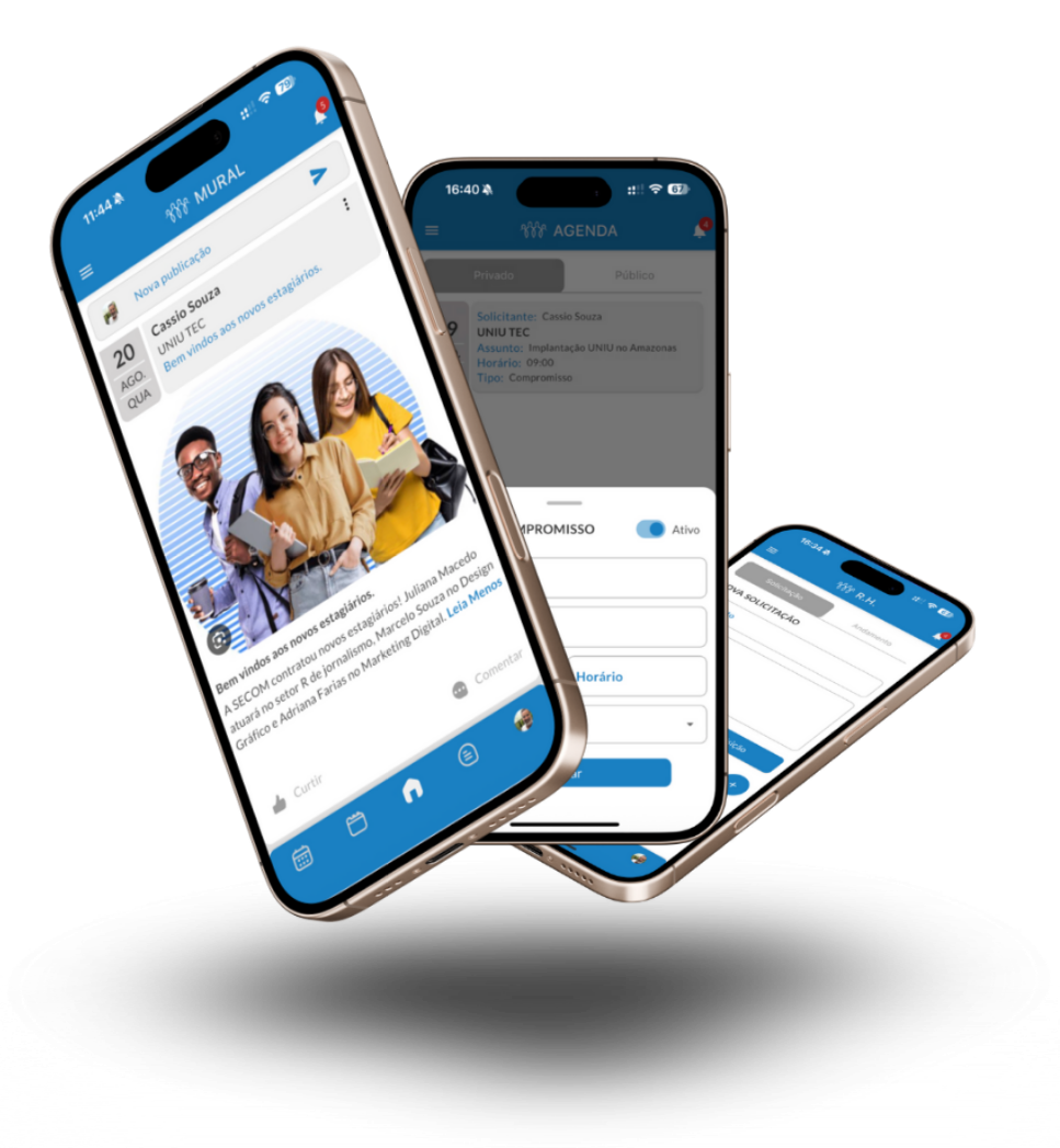 Com a jornada inteligente de Comunicação Interna e engajamento da UNIU, a sua gestão se comunica de forma mais eficiente com todos os públicos internos — do gabinete às secretarias, unidades de atendimento e equipes de campo — por meio de uma plataforma multicanal e integrada.